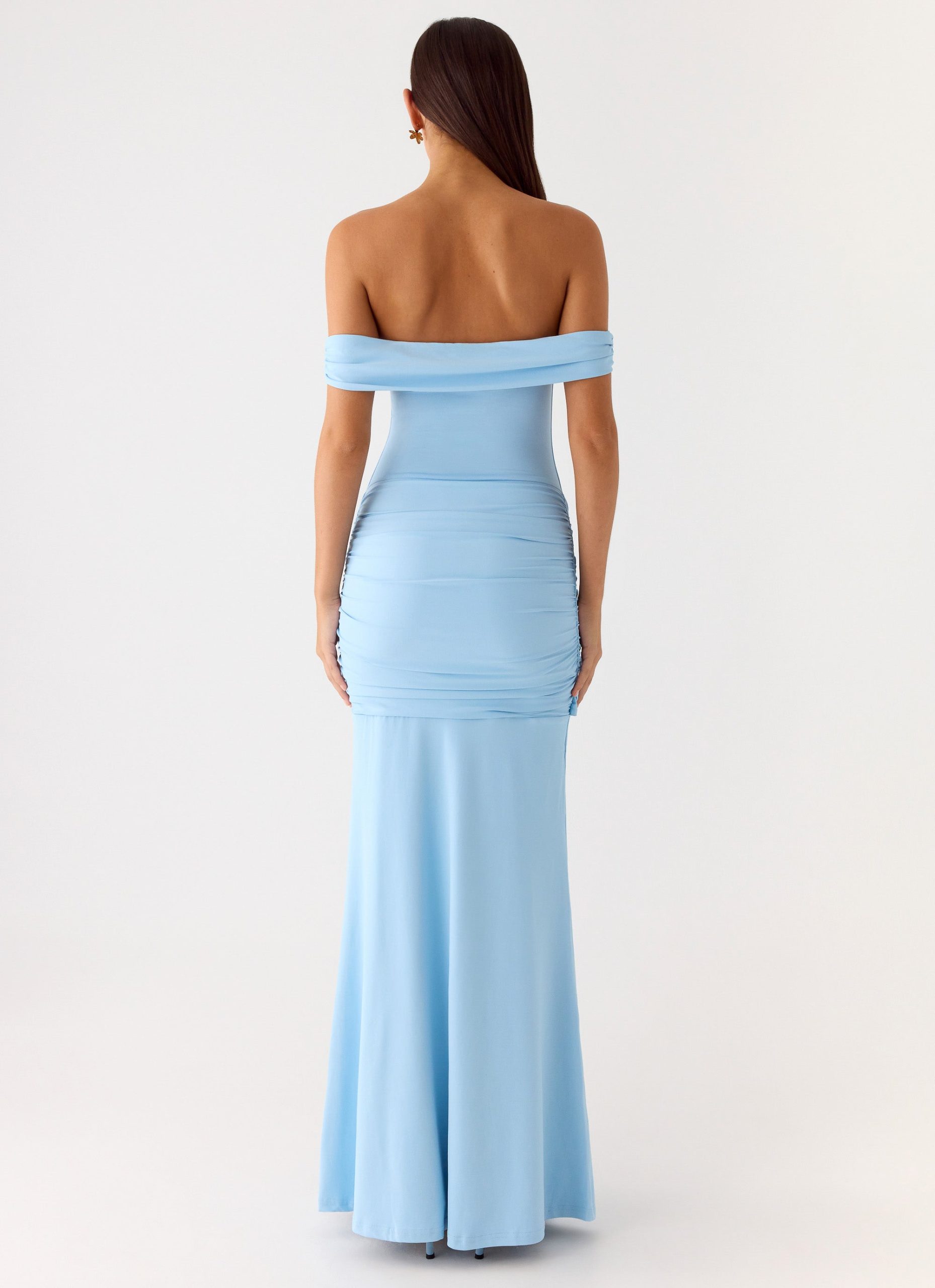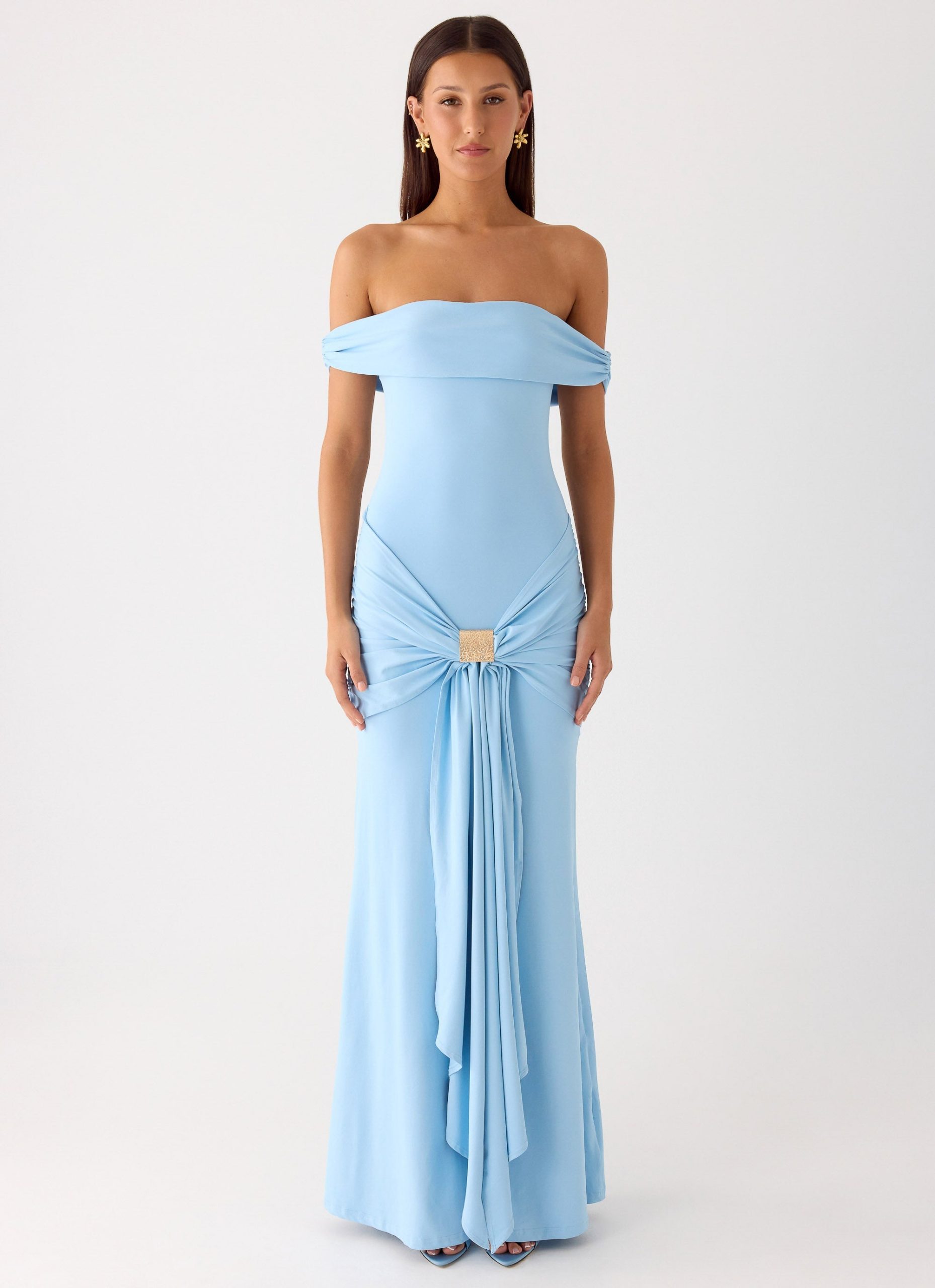 The Vee Bardot Maxi Dress is your golden hour plus-one — made to glide from seaside soirées to dance-floor moments. Featuring an off-shoulder neckline with luxe gold hardware. this body-skimming silhouette is crafted in soft stretch jersey and finished with gathered detailing and a front sash for a touch of drama. Fully lined for a smooth fit. it brings effortless elegance with a sultry edge.
