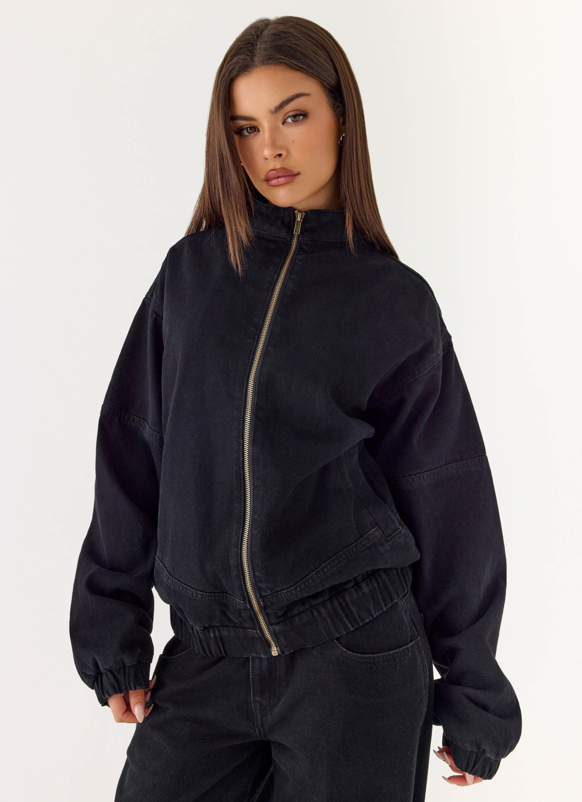 The Waylon Denim Bomber Jacket is made for effortless. off-duty cool. Crafted in ombré denim with an oversized fit. this fully lined jacket features a front metal zipper and elasticated hem for a relaxed. street-ready silhouette. Perfect for layering over casual or weekend outfits with a touch of edge.