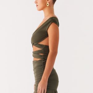 The Wesley Maxi Dress is made for nights that linger in the golden hour. Featuring a boat neckline with ruched bustier and a semi-sheer back. this fully lined dress combines stretch material with a fitted silhouette for effortless elegance.